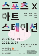 국민체육진흥공단(이사장 조현재) 소마미술관은 오는 2021년 12월 21일부터 2022년 2월 27일까지 스포츠아트전《스포츠x아트 스테이션》을 개최합니다. 이번 전시는 ‘스포츠’와 ‘아트’를 결합한 ‘스포츠아트’라는 새로운 개념을 새롭게 살펴보고자, 변대용, 안성석, 윤상윤, 이연숙, 정형대, 조민서, 지희킴 7명의 평면 및 설치작업 30여점과 스포츠선수와 함께하는 다양한 퍼포먼스 및 체험 프로그램을 선보입니다.