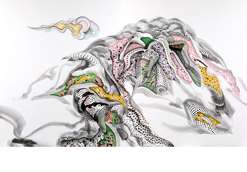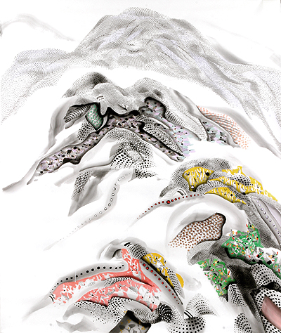 점을 찍은 산수는 분명 새로운 시도이기에 구태의연함에 종지부를 찍을 수 있는 한 도구가 될지도 모른다. 하지만 과거를 찾는 감상자의 눈에 익기까지 이 작가가 거쳐야 할 많은 난곡이 있다. 특히 반전통의 의지가 비전통으로 비쳐질 때 야기될 상황은 작가 스스로 알고 있을 터이다. 그 전통과 반전통, 반전통과 비전통의 경계에 선 점과 같은 상황, 이것이 또한 현대 한국화가 봉착한 위기와도 직결된다. 그 단순한 점들이 도트로 자리잡느냐 준으로 이해되느냐의 종잇장같은 차를 보며 그림이 인간 삶의 기록이며 사회현상의 반영이라는 사실을 다시금 깨닫는다.
