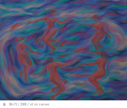 1990년대초부터 환경과 여성을 주제로 그림을 그리던 그녀는 90년대말 강화도 고향으로 내려갔다. 그리고 수년동안의 칩거를 끝내고 2007년부터 폭발적인 힘으로 갯벌 시리즈를 내놓고 있다. 왜 갯벌인가! 그곳에서 그녀의 여정의 비밀을 풀어줄 드림타임(Dreamtime)의 신화적 공간을 발견했기 때문이다. 그녀의 그림 속에 등장하는 찬란한 노을은 지는 해의 석양빛이 아니다. 그것은 태초에 우주를 창조하고, 지구를 만들고, 생명을 창조하던 시원의 빛의 색깔이다.